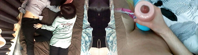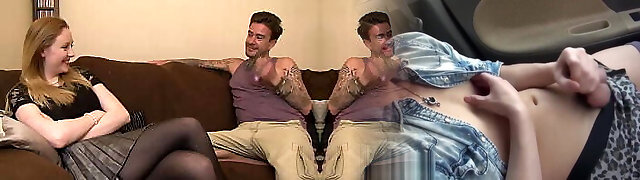 Stepmom (Rachael Cavalli) and Stepson Laughung Husband While Watching Television