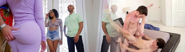 Bubble Butt Blonde Sitter Rides Her Blcak Bf's Pipe