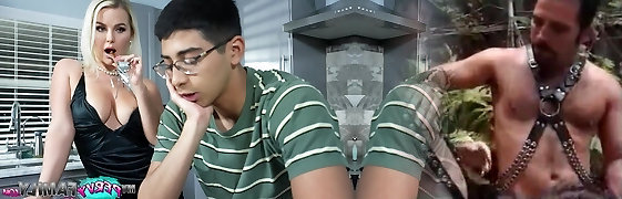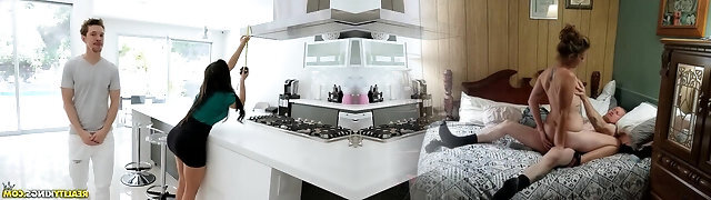 Hot mature mom Ryan Keely bangs geek 19 yo tepson in the kitchen