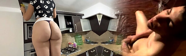 Beautiful Cougar with a Huge Backsidre Cleaning the Kitchen and Take the Advantage of Helping Her
