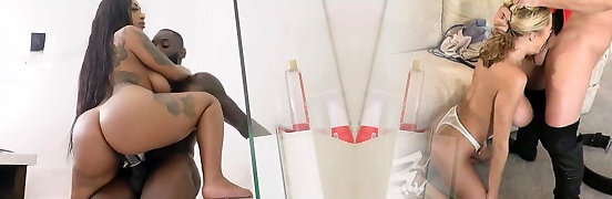 Huge-titted blonde gobbles and rides big black occk