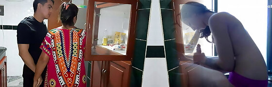 My tepmom gives me a oral pleasure in the kitchen