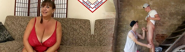 BBC stepson friend strteched this MILF pussy and left cumshot on big mammories