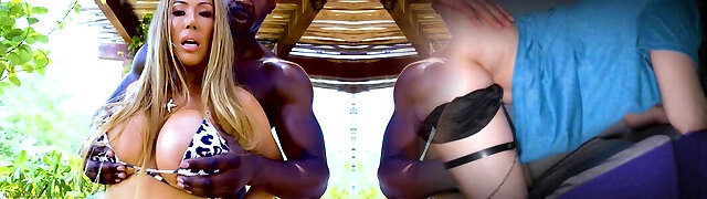 Two slutty MILFs have fun with the Big Black Cock whiole their bikinis scarcely cover their nipples