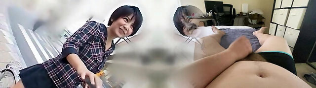 Lazy Japanese nympho geta her a bit hairy pussy finger-tickled and teased with toy