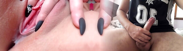 Dril Horny roomy while her boyfriend at work, creamy sex and rubbing cumshot