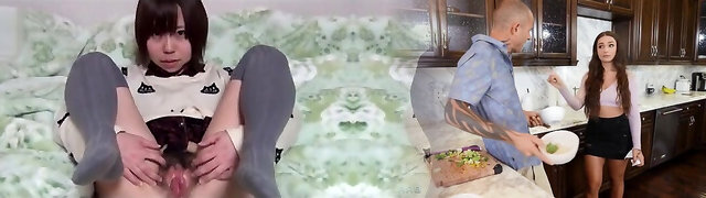 Pood widow Waka Kano gets her twat stretched in the kitchen