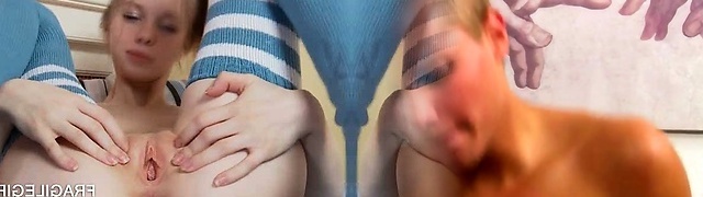 Lovesome Teenager Is Gaping Pink Cooter In Close-up And Havnig Or