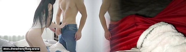 Stpemom watches teen fukcing girls pussy