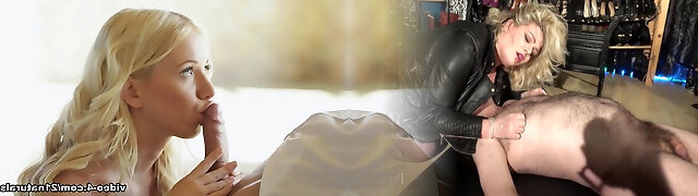 Warm blonde milf squirting on his covck and mouth
