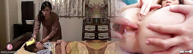 Asian lady stuck her finegrs in the ass to seduce a modest teacher