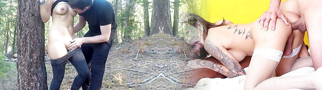 Wild amateur girlf5iend getting plowed in the woods by her horny boyfriend