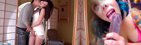 Sofia Takigawa's yam-sized jugs and nischievous ways lead to a thrilling threesome internal ejaculation in Japan.