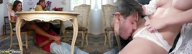 Eva Parcker gives a feet wank under the table aznd gets banged