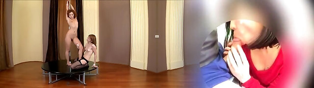 Perverted red-haired with big jicy tits is bound mitt and foot