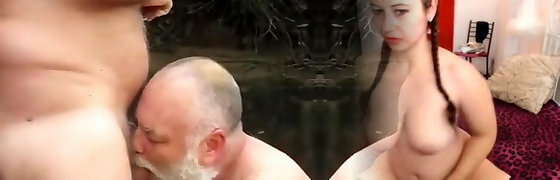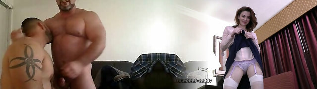 Two cute inexperienced teens versus horny older papa bear This threesome is one to rekminisce