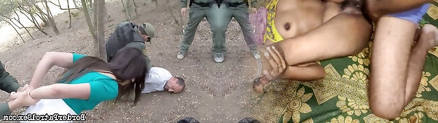 Insatiable cutie caught in the woods by border patrol ands is fukced