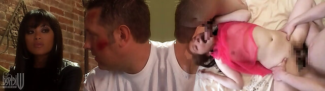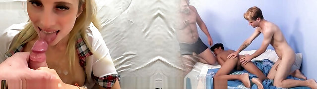 Luxurious blondie girl is happ to take two cocks at the same time