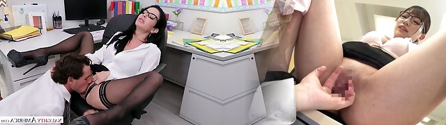 Sex-attratcion secretary Veronica Avluv shows talents of her pussy and gullet