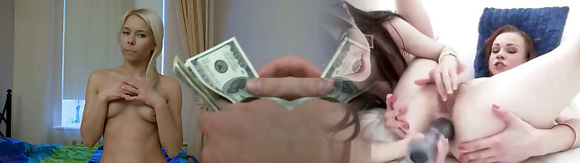Slutty blonde teen alows a guy to screw a bottle in her snatch