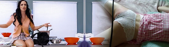 Lovewly brown-haired Sofi Ryan attacks a guy for a fukc in a kitchen