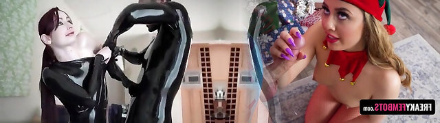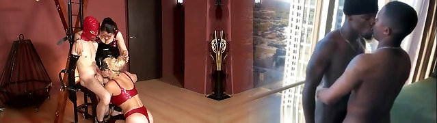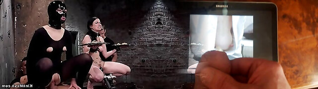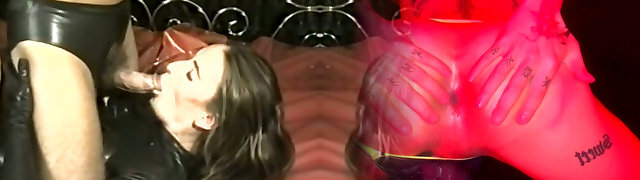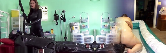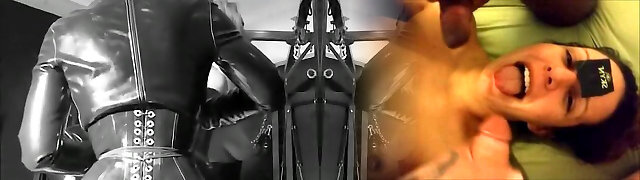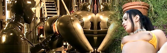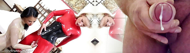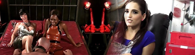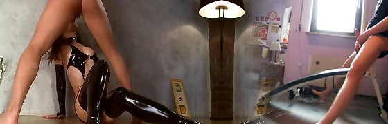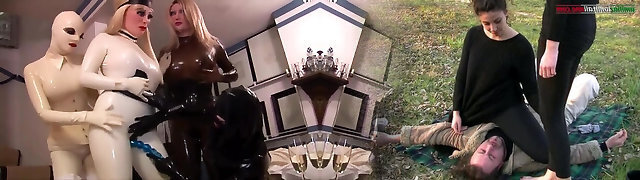 Latex babes Carmen Rivera and Lady Sahara abjuse their gimp