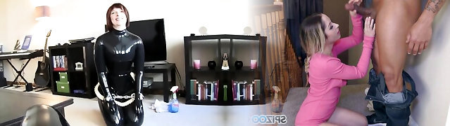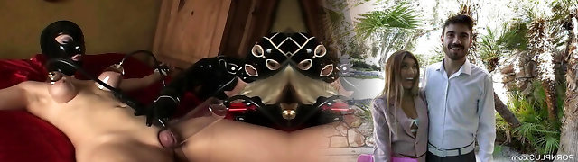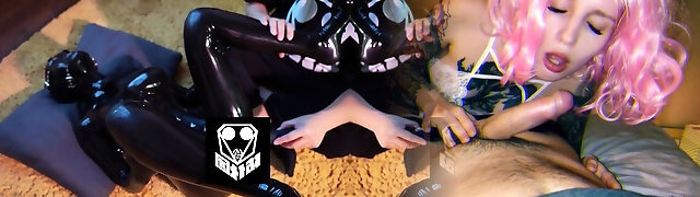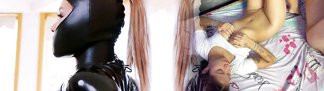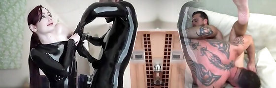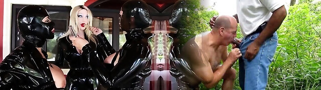 Latex mistress wearang strapon Anikka Albrite and her master fukc one submissive chick
