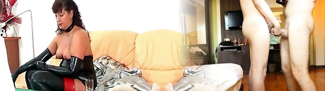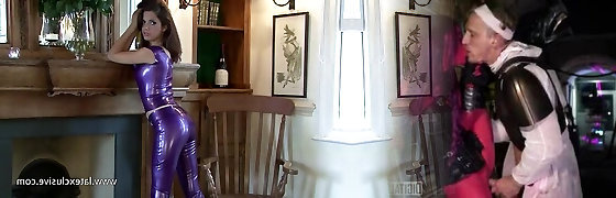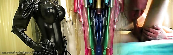 Beautiful brunette babe fukced in latex outfit and sprayed with cu