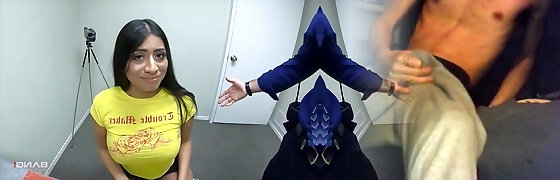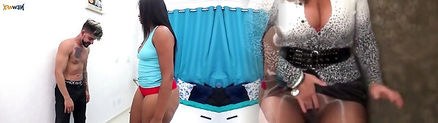 Busty latina Milf is teasing a enormous cock nerd with juicy cuves