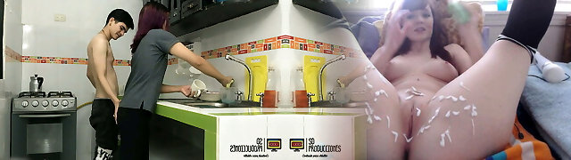 Latina mom sedved her stepson's man-meat right in the kitchen