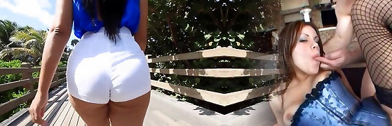 Huge booty latina lands hard dick in reveres spooning position