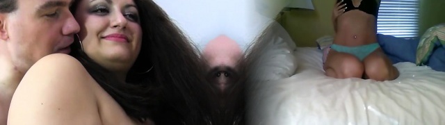 Stepdad wants to opke his chubby daughter-in-law while his wife isn't home