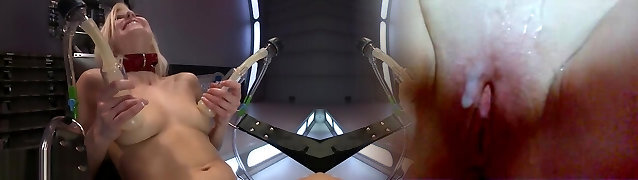Sexy Slim Blondie Is Fuck By A Fucking Machine In Restraun Bondage Scene