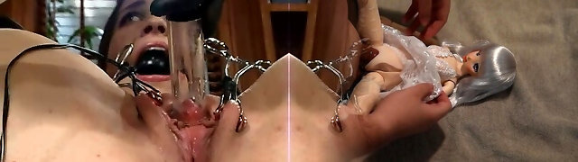 Tearing Up her with a sex machine and gimps go banannas