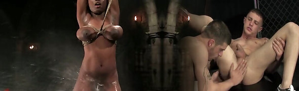 Black Jada Frie gets fukced by a machine in water bondage vid