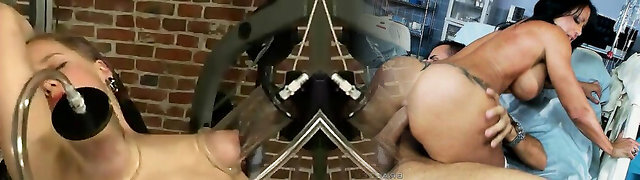 Loni and Phoenix use a ukcing machine while making lesbo enjoy