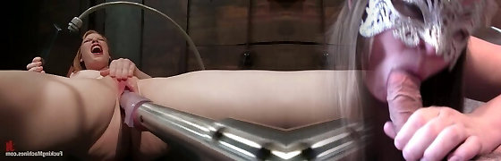 Ginger-haired Girl Fucked By Sveral Devicxes in Crazy Fucking Machine Video