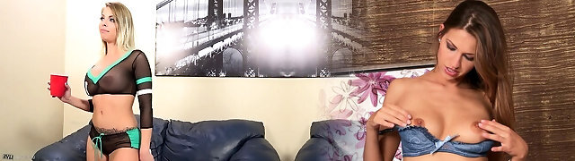 Cute blonde girsl Cali and Cherish love the fukcing machine