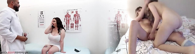 Lusty Curvy Busty Doctor Takes Advantage Of Her Patient's Cock Right Next To His Girfriend