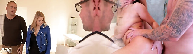 Giant tittied blond Candy Alexa gets double penetrated at the klinic