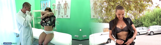 Hot girl demostrating her tits to doctor