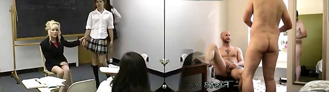 Three naughty Asian schoolgirls seduce two etachers one by one