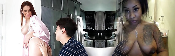 Platinum-blonde India Summer cheats on her boyfriend with a darkm-hued guy