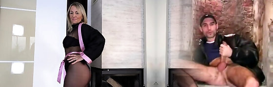 DCool Cougar Gets Her Nylon Black Pantyhose Jizzed After Playing a Bit With Her Husband's Dong