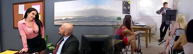 Nasty brunette gbitch Sara Jay fukcs Bruce Escapade on the lecturer's table