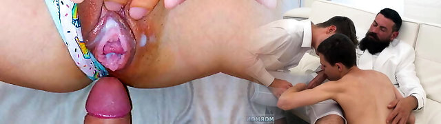 Sex-crazy grannies bang on twunk and swallow his cock like thirsty for sperm