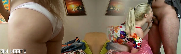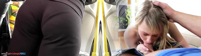 Juicy Russian teen in leater trousers gets eaten before giving blowjob