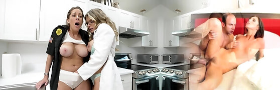Lesbian pussy gobbling in the kitchen with Cory Cnhase and Nikki Brooks