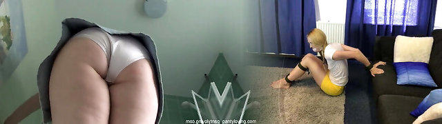My buddy fukced kinky slim GF of hs and cummed on her golden thongs