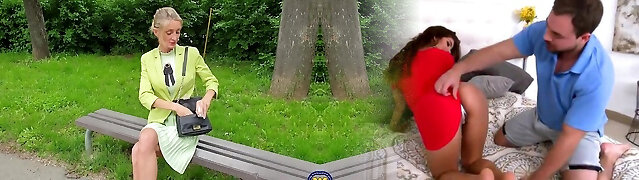 Stepmom Caught Son-in-law Jerkign Off And Helps To Jizz Quick In Her Panties 10 Min